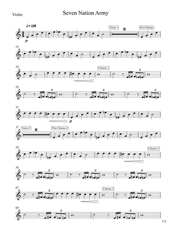 Seven Nation Army Sheet Music For Violin Percussion Download